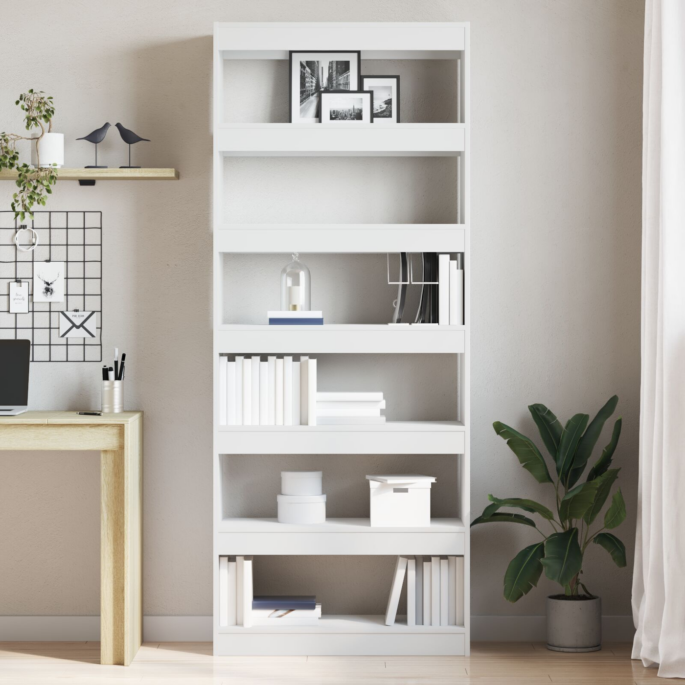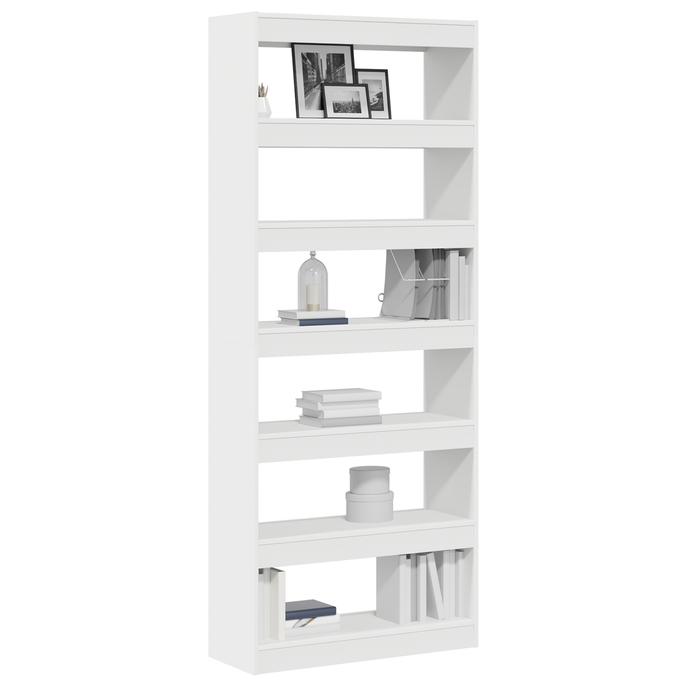 This minimalist white bookshelf is just what you need for a sleek and stylish storage solution. It’s great for books, decor, or those special bits and pieces. With its chic design and smooth matte finish, it adds a modern feel to any living room, study, or office while fitting in perfectly with your current decor. Spacious Storage: With six shelves, this bookshelf gives you loads of space for all your books and decor, making it easy to organise and display. Stylish Design: The clean lines and minimalist look work well and uplift your space, making it a stylish feature in any room. Durable Build: Built from top-notch MDF, this shelf stands up to daily use while keeping its classy look, resisting wear and tear. Secure Stability: The wall attachment keeps this bookshelf steady, preventing it from tipping over and enhancing safety, especially in homes with kids or pets. Versatile Use: Perfect for different settings, it’s not just for books; it can show off cherished items too, making it a brilliant addition to living rooms, studies, or home offices.