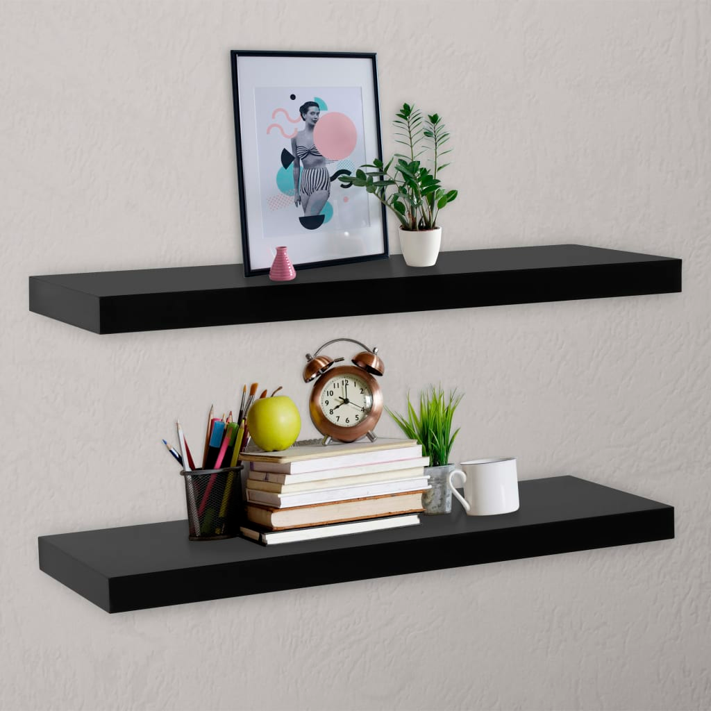This set consists of 2 wall display shelves that will become the focal point of your home. With an invisible mounting system, these wall shelves are easy to install and serve as the perfect place to store the items such as awards, books, collectables, ornaments, etc. This display shelf will suit any decor and turn an empty wall into a feature! This hanging shelves are made of MDF with painting, which is durable and easy to clean. The shelves are easy to assemble.