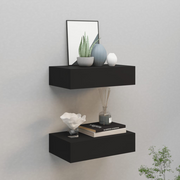 Introduce a touch of elegant charm into your interior decor with these compact drawer shelves! Crafted from MDF and metal, this floating shelf is built to last. The wall-mounted shelf with a drawer will offer ample space to place picture frames, collectibles, books, toys, small plants, etc. It adds design and style to different living rooms and gives them a bright feeling.
