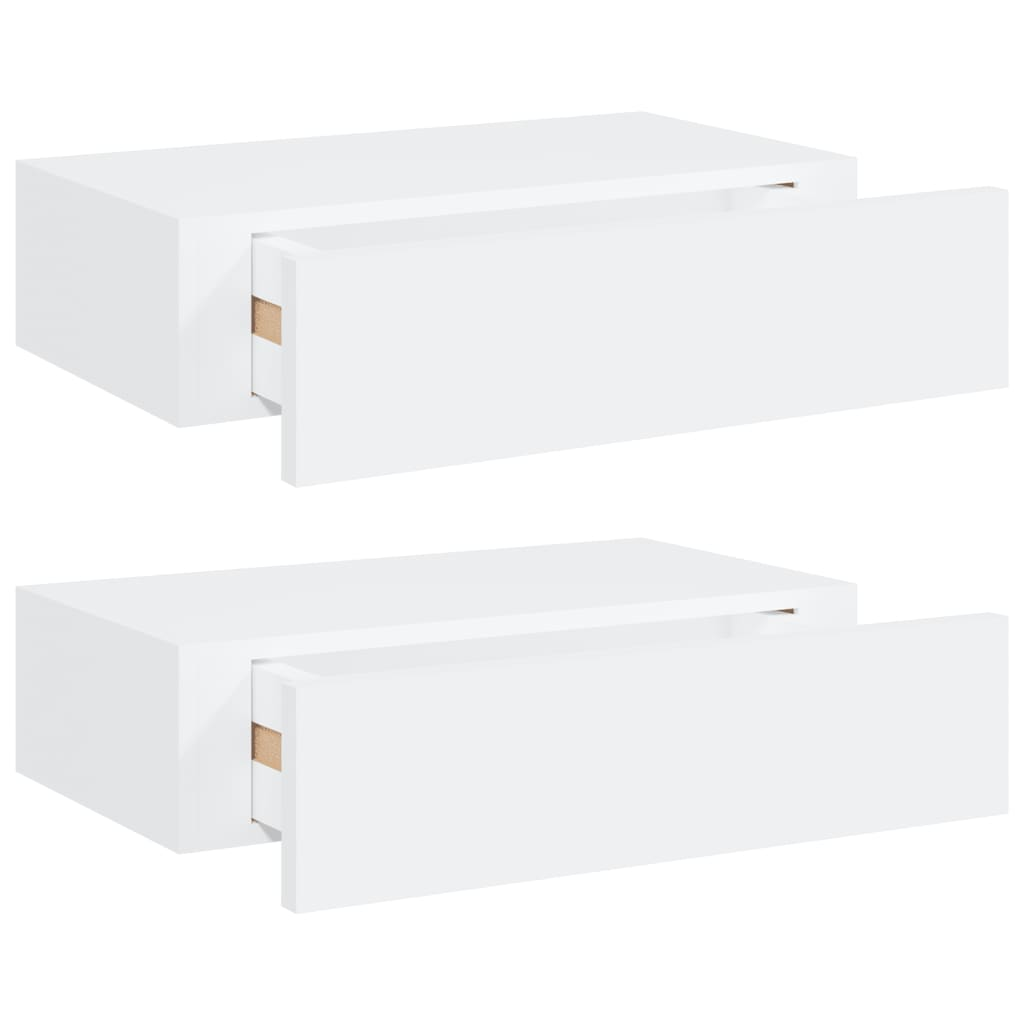 Introduce a touch of elegant charm into your interior decor with these compact drawer shelves! Crafted from MDF and metal, this floating shelf is built to last. The wall-mounted shelf with a drawer will offer ample space to place picture frames, collectibles, books, toys, small plants, etc. It adds design and style to different living rooms and gives them a bright feeling.