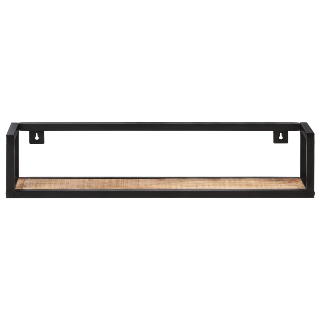 This set of 2 wooden wall shelves featuring an industrial style perfectly combines style and functionality. It is also an excellent option to enlighten any wall in the room. This set of wall shelves is made of rough mango wood, a tropical hardwood with the strength to bear the weight. It also stands the wear and tear of time, making it durable and an ideal choice for any room you need to place daily items. The black powder-coated iron frame ensures the stability. Each wall rack has a loading capacity of 30 kg.
