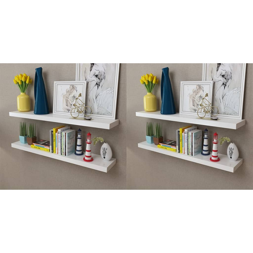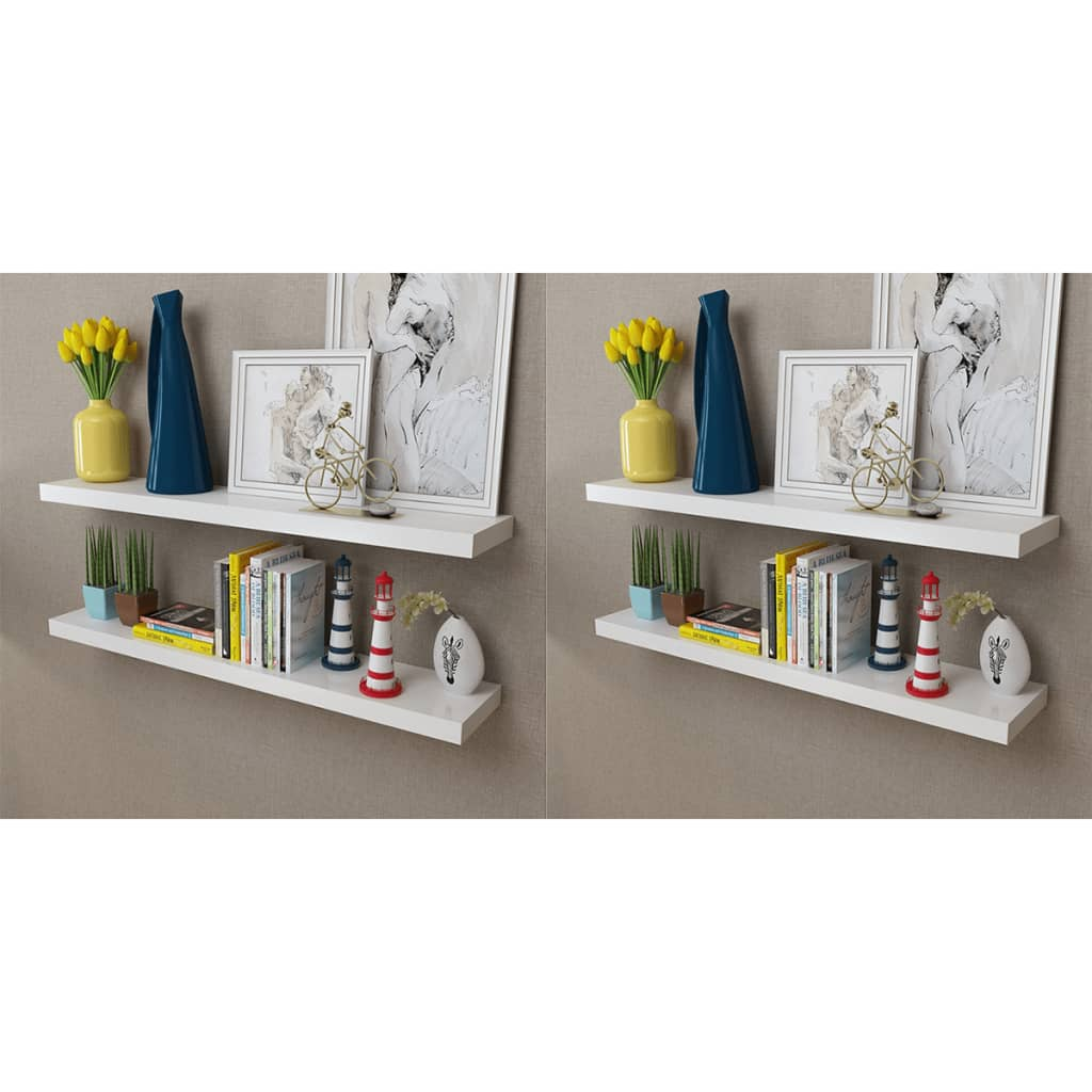 This set consists of 4 wall display shelves that will become the focal point of your home. With an invisible mounting system, these wall shelves are easy to install and serve as the perfect place to store the items such as awards, books, collectables, ornaments, etc. This display shelf will suit any decor and turn an empty wall into a feature! These hanging shelves are made of high-quality MDF with a matte finish. Delivery includes 4 wall shelves, screws and wall plugs.