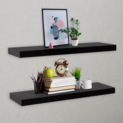 This set consists of 2 wall display shelves that will become the focal point of your home. With an invisible mounting system, these wall shelves are easy to install and serve as the perfect place to store the items such as awards, books, collectables, ornaments, etc. This display shelf will suit any decor and turn an empty wall into a feature! This hanging shelves are made of MDF with painting, which is durable and easy to clean. The shelves are easy to assemble.