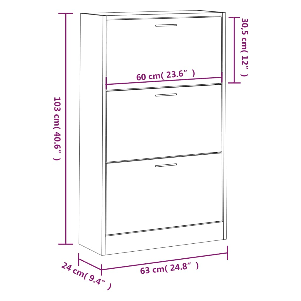 This shoe cabinet, in a modern and stylish design, is an excellent piece of furniture to store your shoes in an organised way. It is suitable for the entrance, hallway, living room, bedroom and other places you want it to be. Durable material: The engineered wood is of exceptional quality with smooth surface and also features strength, stability and resistance to moisture.Ample storage space: This shoe rack features 3 drawers, providing ample space to keep your shoes within reach and well organised.Pull-down drawer design: With its pull-down drawer design, this shoe storage cabinet is easy to open and close. Note:Each product comes with an assembly manual in the box for easy assembly. Warning:In order to prevent overturning, this product must be used with the wall attachment device provided