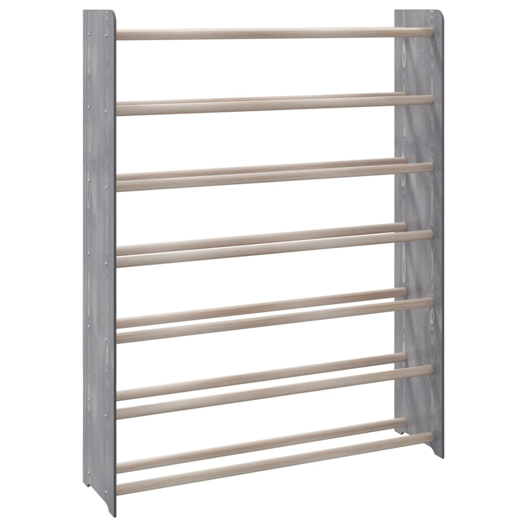 Keep your shoes organised and always at hand with this shoe rack! Sturdy material: The engineered wood is of exceptional quality with smooth surface and also features strength, stability and resistance to moisture.Solid pine wood: Solid pine wood is a beautiful natural material. Pine wood has a straight grain, and the knots give the material its signature, rustic look.Stable shelves: Shelves made of impregnated pine wood feature sturdiness and stability.Ample storage space: This shoe shelf can provide ample storage space for keeping all your shoes within reach.Trendy design: This chic shoe storage rack features clean lines and a minimalistic look that adds a modern touch to your existing decor. Warning: In order to prevent overturning, this product must be used with the wall attachment device provided.Note:Each product comes with an assembly manual in the box for easy assembly.